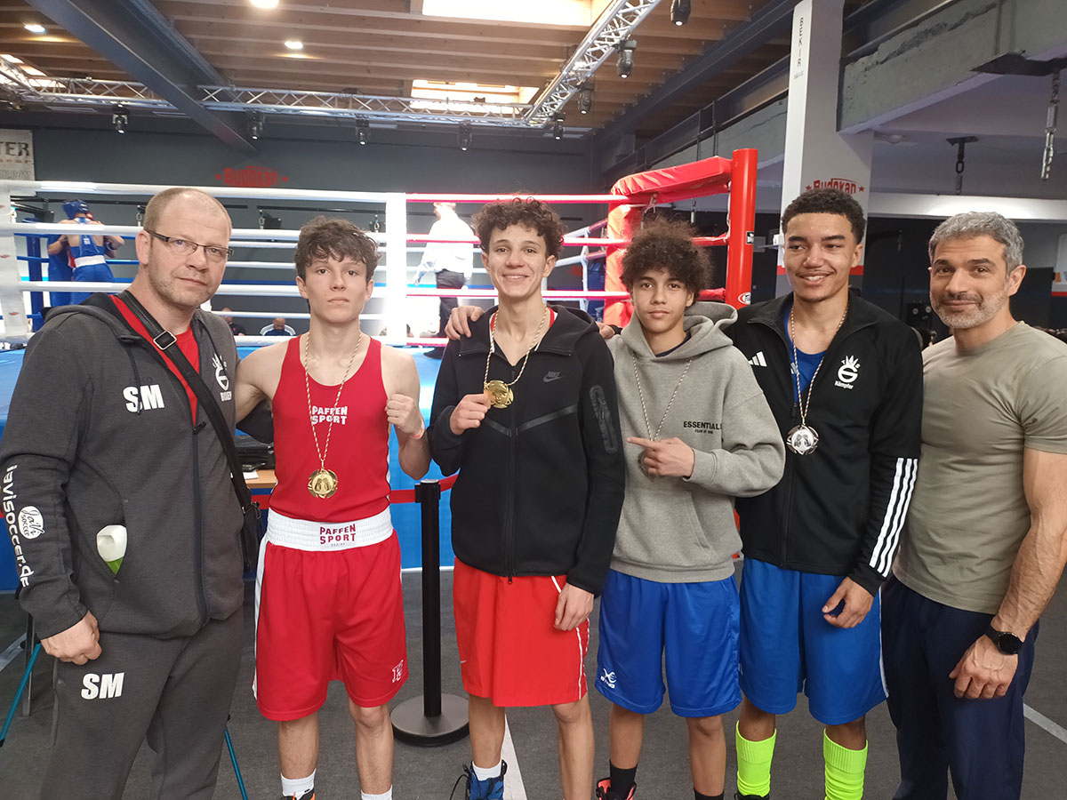 Zu den Meistertiteln von Arthur und Abdelkarim gesellten sich zwei Vizemeistertitel. In der Gewichtsklasse bis 50 kg bezwang Adam Zahrouni im Halbfinale einen Boxer aus Vreden, unterlag dann aber im Finale sehr umstritten einem Kaderboxer aus Siegburg.